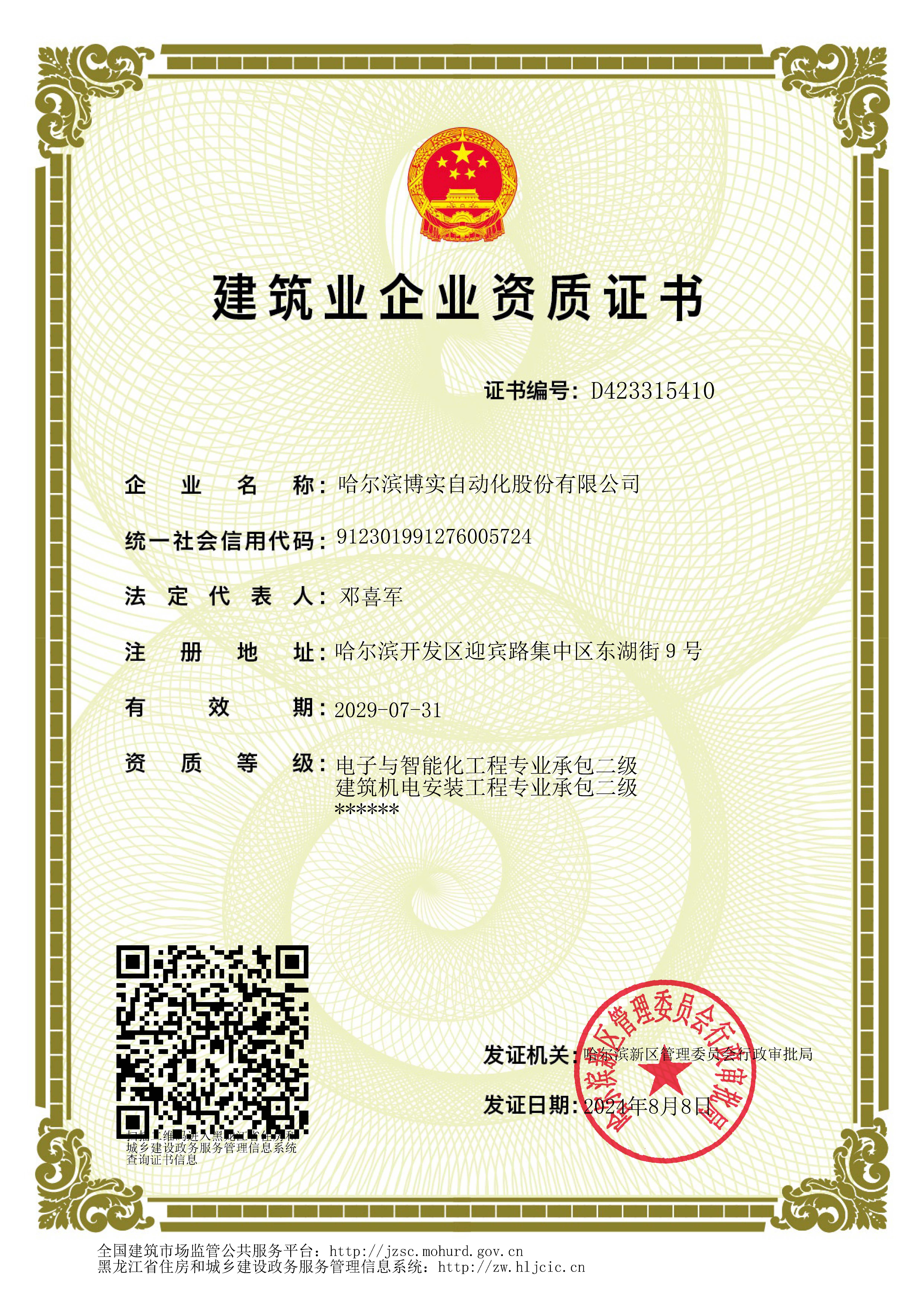 建筑業企業資質證書