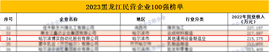 博實股份榮登2023黑龍江民營企業100強、2023黑龍江制造業企業100強、2023黑龍江企業100強,三大榜單。