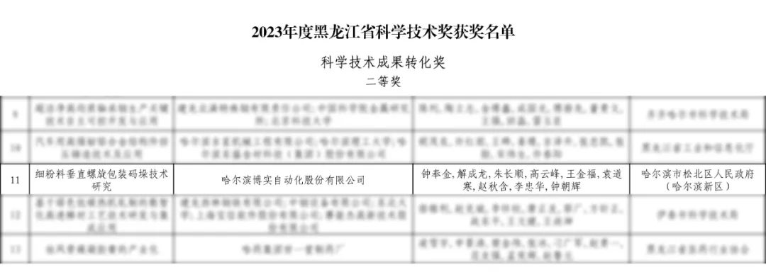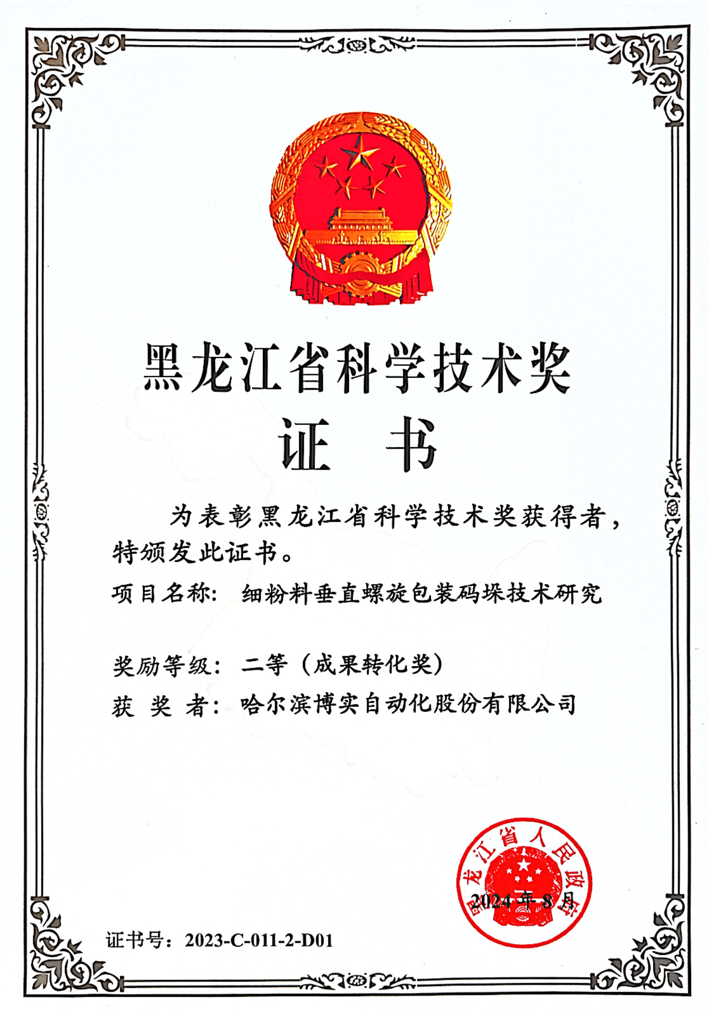 近日,由博實股份副總工程師鐘奉金牽頭的“細粉料垂直螺旋包裝碼垛技術(shù)研究”項目,憑借卓越的技術(shù)創(chuàng)新和顯著的社會經(jīng)濟效益,榮獲2023年度黑龍江省科學(xué)技術(shù)成果轉(zhuǎn)化二等獎。