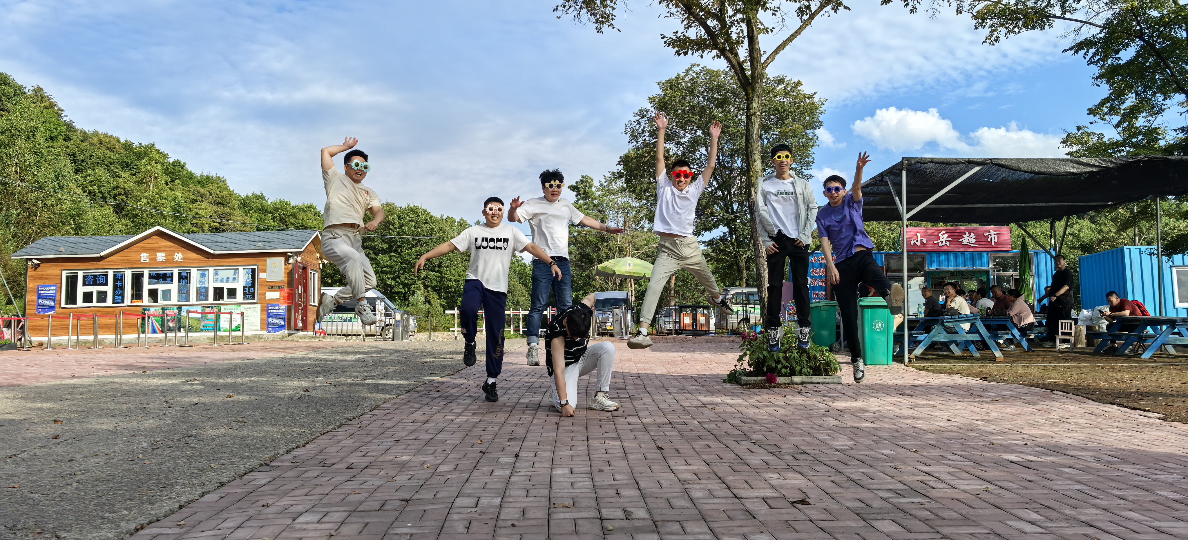 欣賞過大自然的美景后,我們四五個(gè)人圍坐一起玩撲克牌、在大喇叭處吶喊、在打卡點(diǎn)拍照,這樣簡(jiǎn)單的小游戲卻讓我們開心不已。