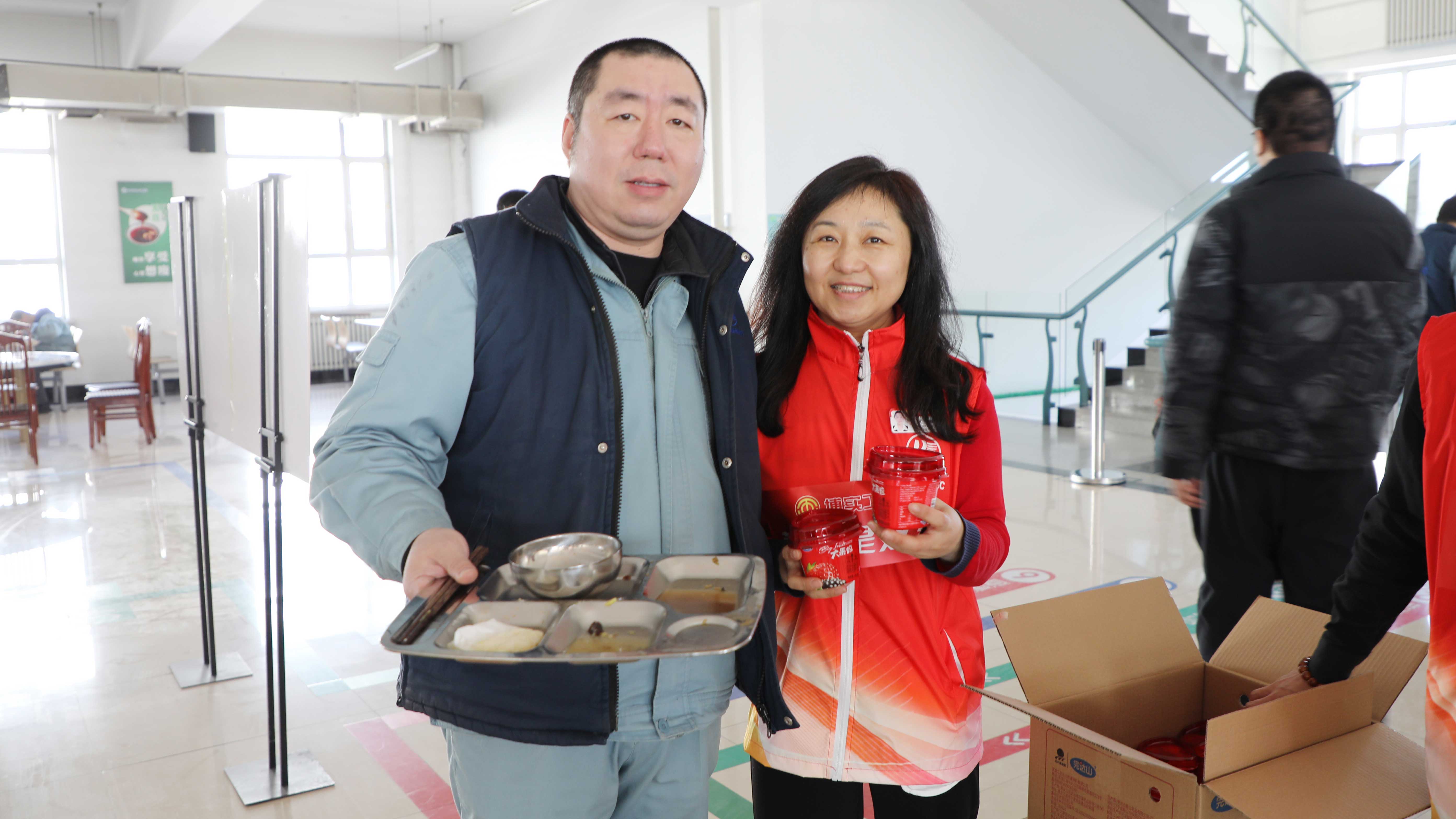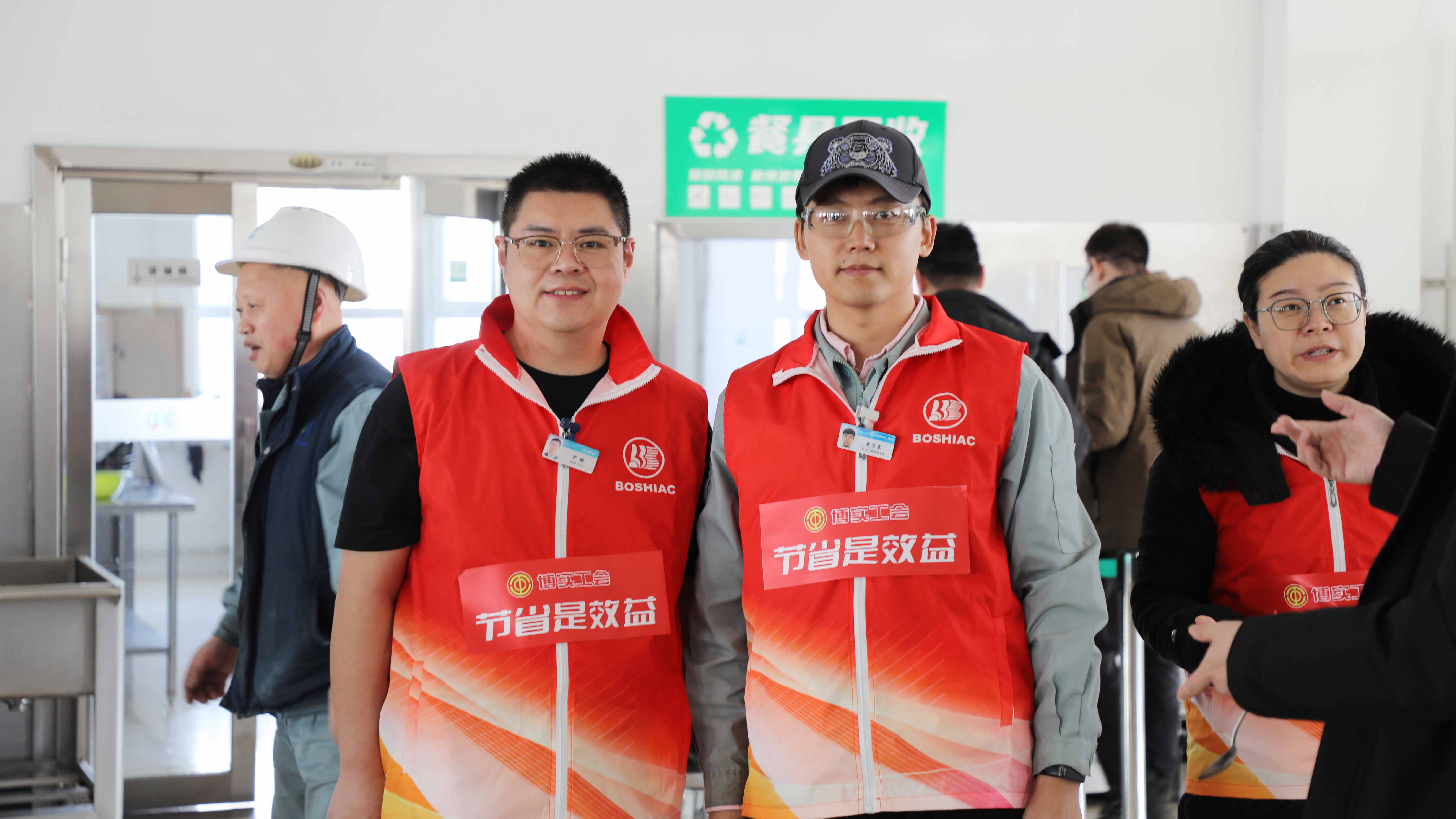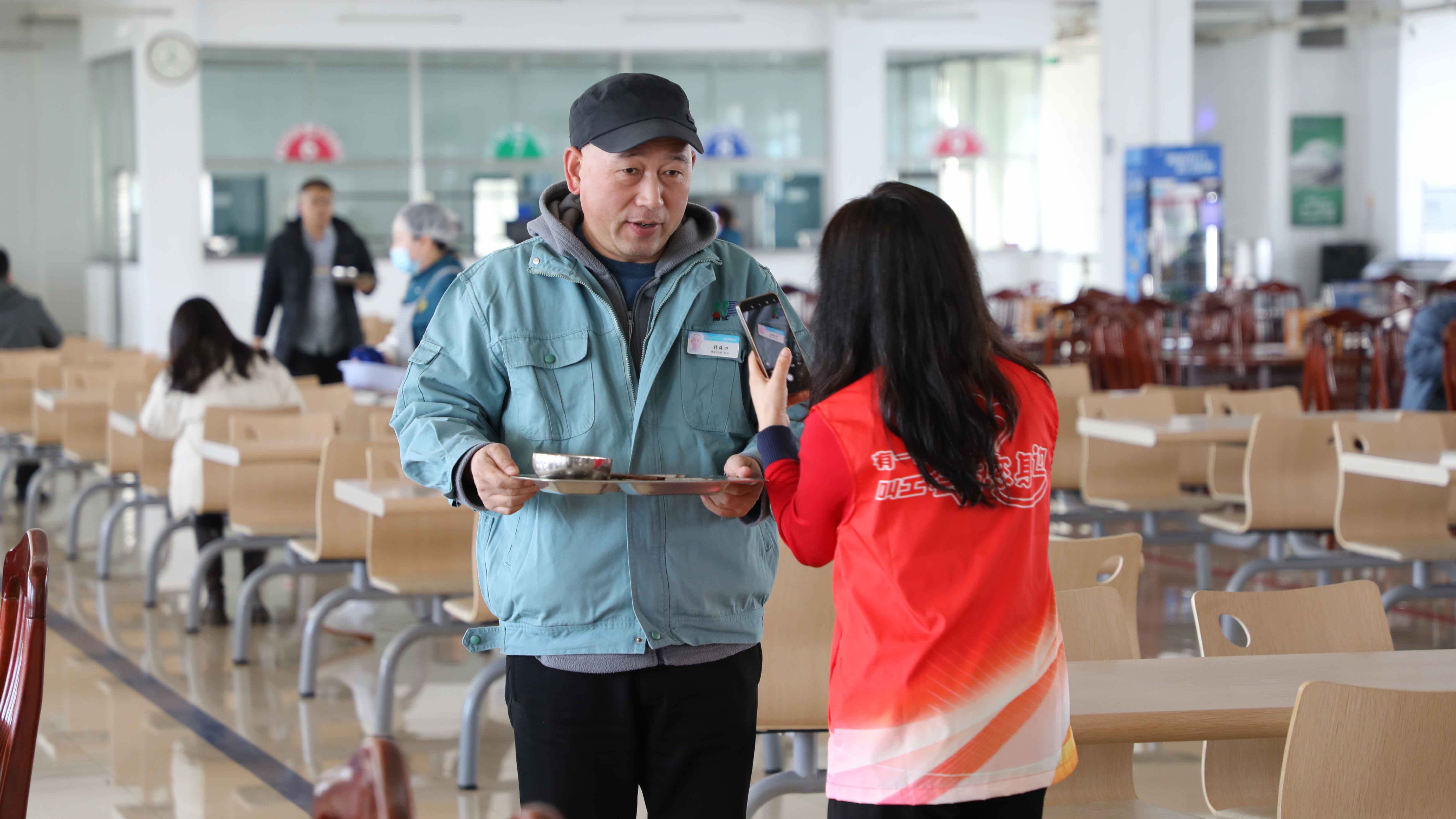 3月14日11點20分,遠遠看見有幾位“紅馬甲”在食堂餐盤回收處忙碌著,走近看,原來是工會委員亮身份了!他們衣服上的印字奪人眼球:“有一種溫暖叫工會在你身邊”“節約是美德”“節省是效益”,堆成小山的大果粒酸奶也整整齊齊碼好了,等待會員們的到來。