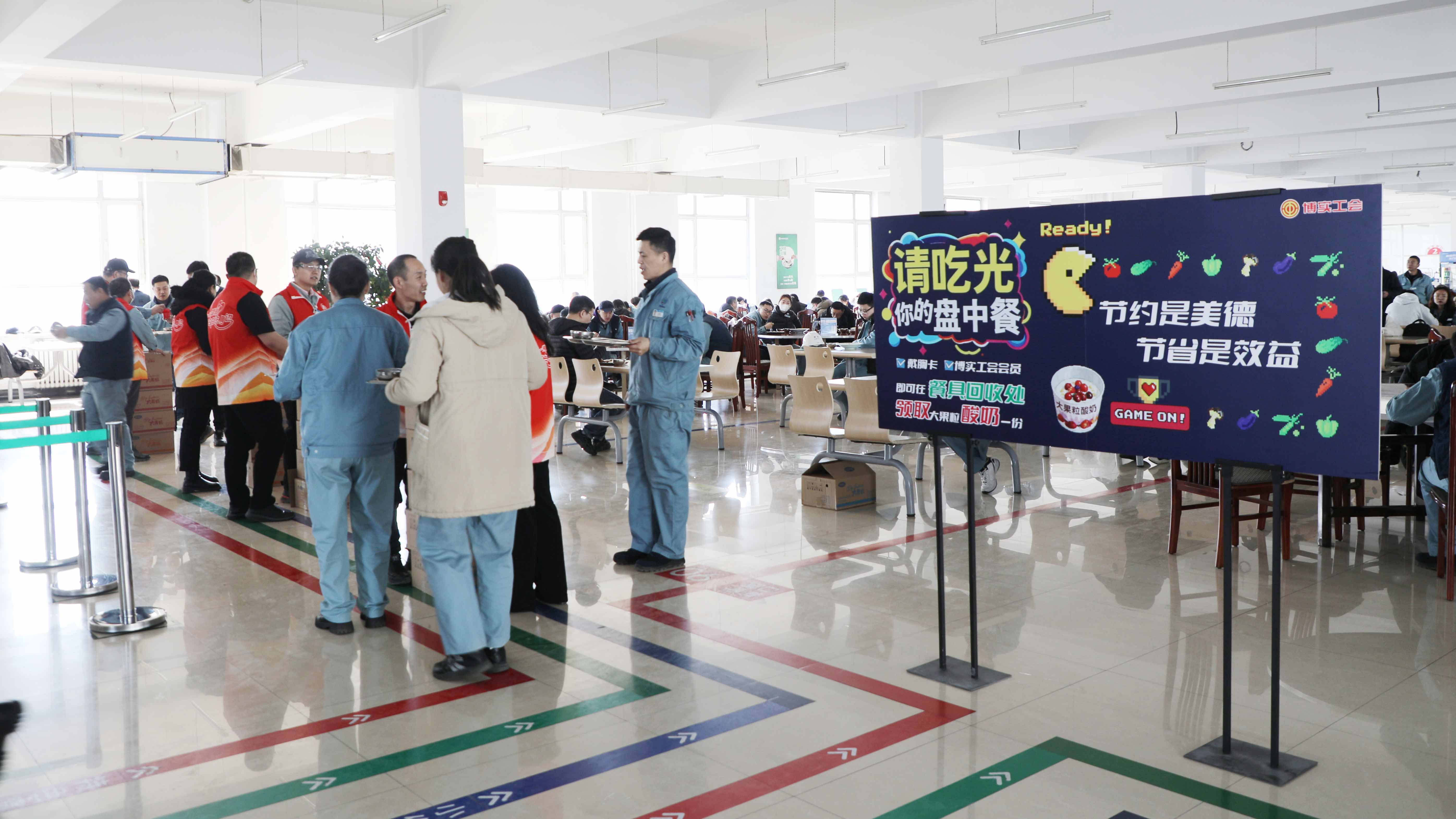 “光盤行動”,顧名思義就是將餐盤內食物吃干凈。活動當日,工會會員佩戴公司胸牌,吃光餐盤內的食物,經委員檢查合格后,每人可領取大果粒酸奶一盒。