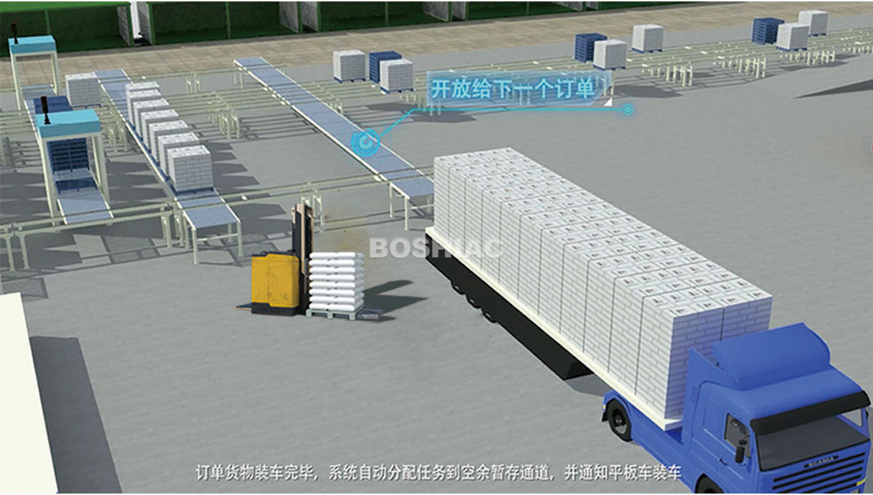 智能物流系統(tǒng)以自動裝車系統(tǒng)為核心單元,以視覺識別系統(tǒng)、芯片信息技術(shù)、數(shù)據(jù)信息接口系統(tǒng)、物流調(diào)度系統(tǒng)、轉(zhuǎn)運輸送系統(tǒng)等為輔助組成,該系統(tǒng)可有效替代人工作業(yè)、提高物流自動化能力、提升物流作業(yè)效率、降低運輸成本,對多種袋裝、箱裝、散裝物料進行轉(zhuǎn)運、堆碼、拆分、組合、裝載等物流作業(yè),適用于多種車型裝載(如廂式貨車、敞篷貨車、集裝箱、槽罐車、貨車等)及多種轉(zhuǎn)運方式,結(jié)構(gòu)緊湊、運動靈活、控制精準。