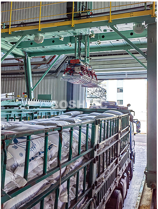 該設備能夠實現機械手的自動行走、物料的自動編組裝車等復雜作業,將包裝好的袋裝物料用機械手裝入車廂內。可以縮短裝車碼垛時間,降低勞動強度,減少貨物的損傷、降低裝車成本和提高工作效率,能夠實現高速全自動裝載。